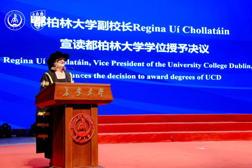 都柏林大学副校长Regina Uí Chollatáin宣读都柏林大学学位授予决议