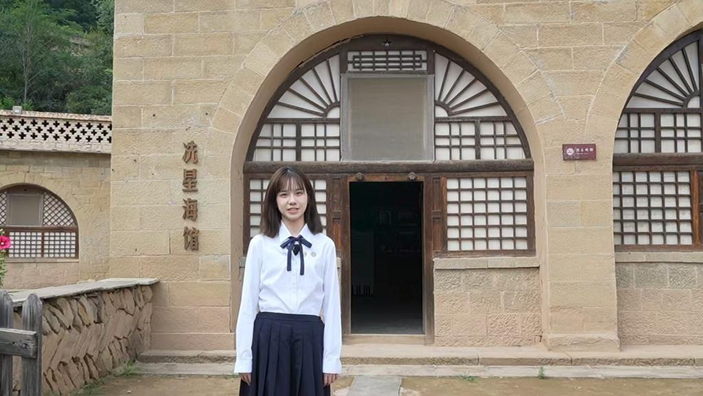 当青年镜头对准红色遗迹,历史便有了新的叙事语态。在鲁艺旧址东山,2023 级学生王雅菁对着镜头讲述冼星海在窑洞创作的故事,当《黄河大合唱》的旋律与青春解说交织,革命浪漫主义有了新的表达;延安红色家风馆内,2024 级学生薛雨乐录制左权家书时,刻意放慢语速,让“牺牲一切为事业” 的誓言在字间流淌;中国女子大学旧址的石板路上,2024级学生刘佳琪将窑洞遗迹与“高跟鞋到粗布鞋” 的蜕变融入镜头,让巾帼担当有了具象注脚;韩城芝川渡口,2024级学生张泊彦以黄河涛声为背景录制讲述,让门板的裂痕与老船工后代的回忆在画面里共振。