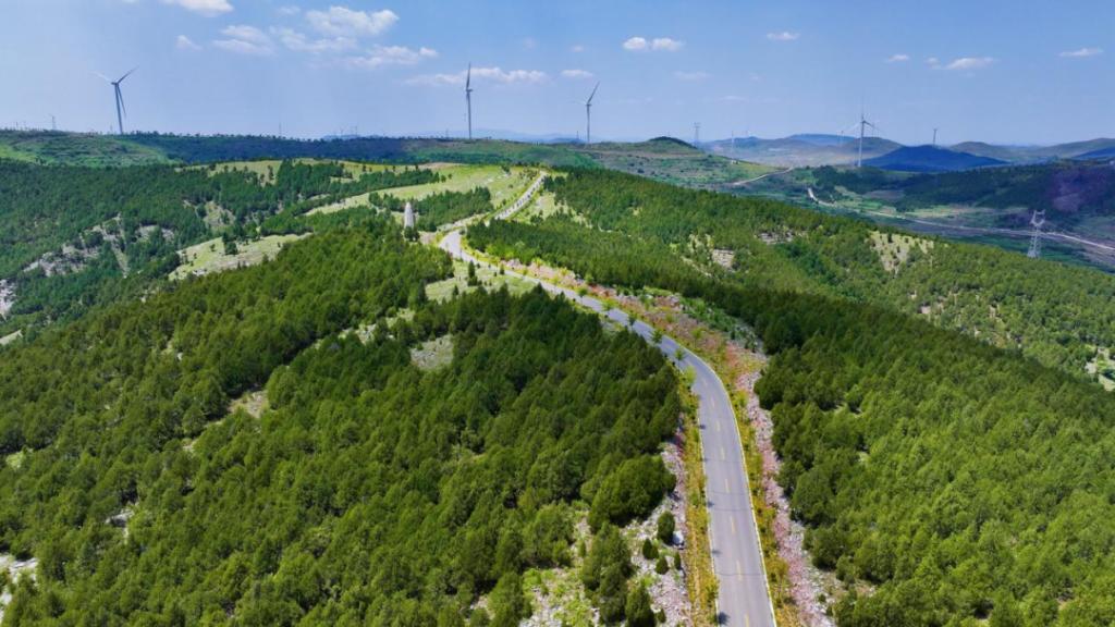 在苑文龙主任的带领下,实践队员沿路上行,实地考察安丘以发展建设、路线规划、沿途带动等多位一体发展模式,深入了解乡村振兴中交通体系建设的主力作用、引领作用和模范作用。队员们沉醉在自然风光的美景中,震撼于光伏风能发电体系的雄伟,深刻认识到这不仅是一条生态旅游路,更是一条科技兴村路和产业致富路。安丘“天路”的建成,不仅打开了山区群众致富的大门,打通了农村经济发展的命脉,更为乡村振兴插上了腾飞的翅膀。