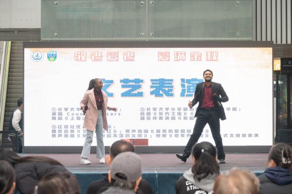 学生活动 首页 - 学生活动 - 正文 学院联合红缨社区开展“敬老爱老,爱满金秋”敬老月主题志愿服务活动 浏览量:时间:2025-11-12 第1页 第2页 第3页 第4页 第5页 梁晶栋,夏媛致辞 文艺演出环节,中外学子同台献艺,展现出多元文化交融的动人画面。来自孟加拉国与津巴布韦的留学生倾情演唱英文歌曲《Counting Stars》,以青春之声传递跨越国界的温暖祝福。舞蹈《上春山》由多国学生共同演绎,轻盈舞步中寄托对长者生活的美好祝愿。学院学生带来《东方之珠》《大中国》等经典歌曲联唱,以及器乐伴奏版《我和我的祖国》,以音乐抒发家国情怀,引发在场观众的深深共鸣。 上一页 [1] [2] [3] [4] [5] 下一页