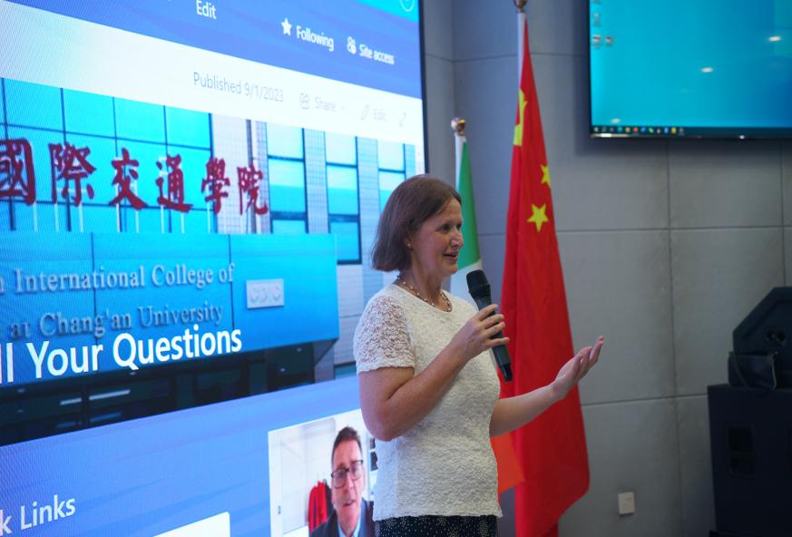 首先,Catherine MacKenzie对2023级新生表示热烈欢迎。她就爱尔兰都柏林大学和太阳成tyc9728中外合作办学情况及各专业进行了简单介绍。太阳集团网tyc9728开设三个中外合作办学本科专业:道路桥梁与渡河工程,车辆工程,交通运输。均采用“4+0”,双学籍,双注册,双学位的培养模式,实现不以出国为必须条件就能取得都柏林大学和太阳成tyc9728双学士学位。她希望,同学们能在大学本科阶段的第一年就致力培养良好的学习习惯,坚守学术道德,坚持学术诚信,为大学四年以及未来的学习打下坚实基础。希望同学们能通过四年在太阳集团网tyc9728的学习,成长为具有国际竞争力的复合型人才。