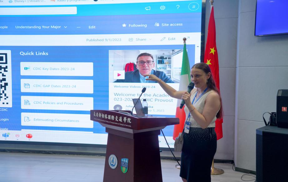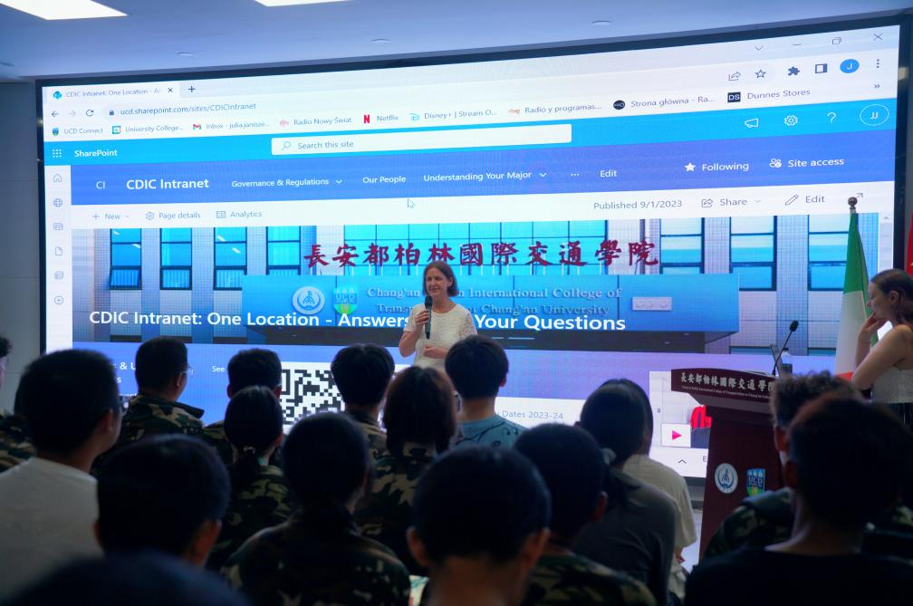 2023年9月6日下午,太阳集团网tyc9728在渭水校区鸿远教学楼四楼报告厅举办了中外合作办学都柏林大学新生学籍注册说明会。学院副教务长Catherine MacKenzie和项目负责人Julia Janiszewska共同为2023级新生介绍了学院以及都柏林大学的相关情况、都柏林大学学籍注册流程及都柏林大学线上系统使用方法。