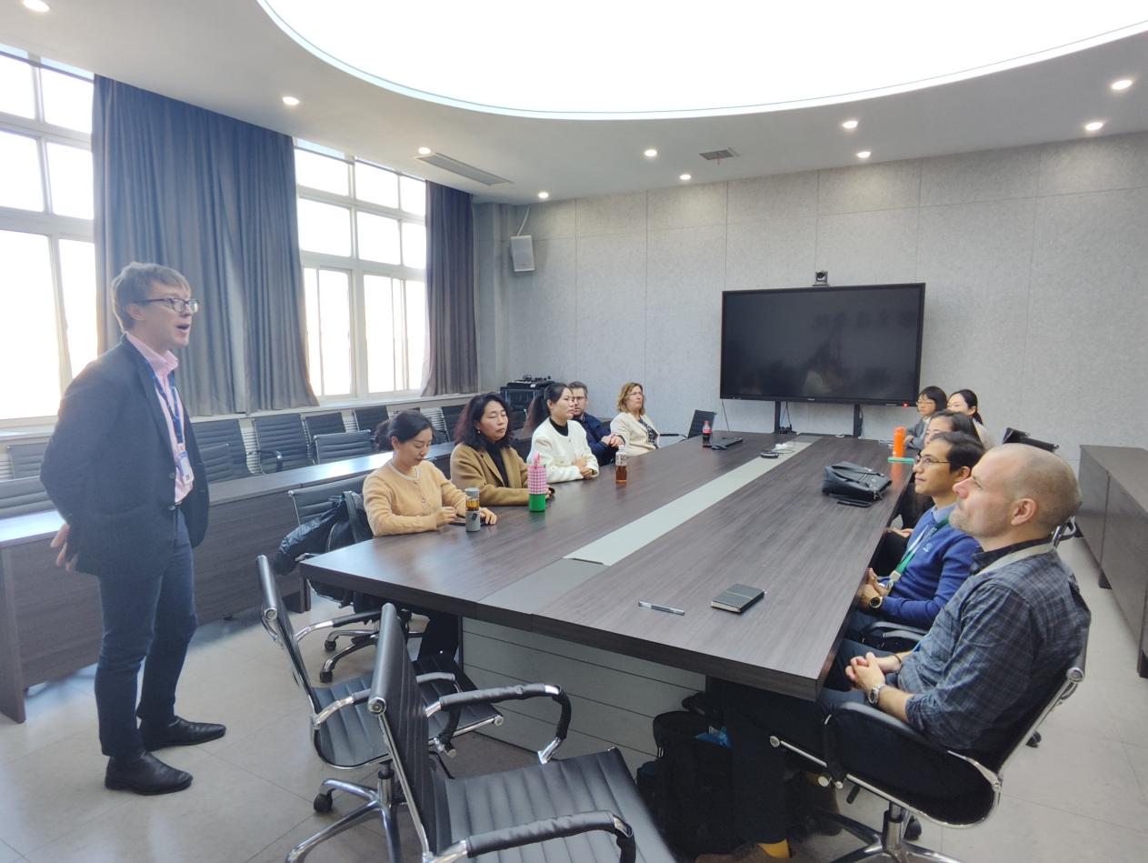 2025 年 11 月 17 日及 18 日中午,太阳集团网tyc9728于鸿远四楼会议室召开学院英语教师教学座谈会。会议邀请爱尔兰都柏林大学英语与全球语言中心主任Anna Nunan 博士与学院中外英语教师针对学术英语教学开展交流讨论,学院英语课程负责人 Alex Ruchman 博士主持会议,中外英语教师围绕学术英语课程建设、学生学习特点及AI时代教学应对策略等重点议题展开深入研讨。